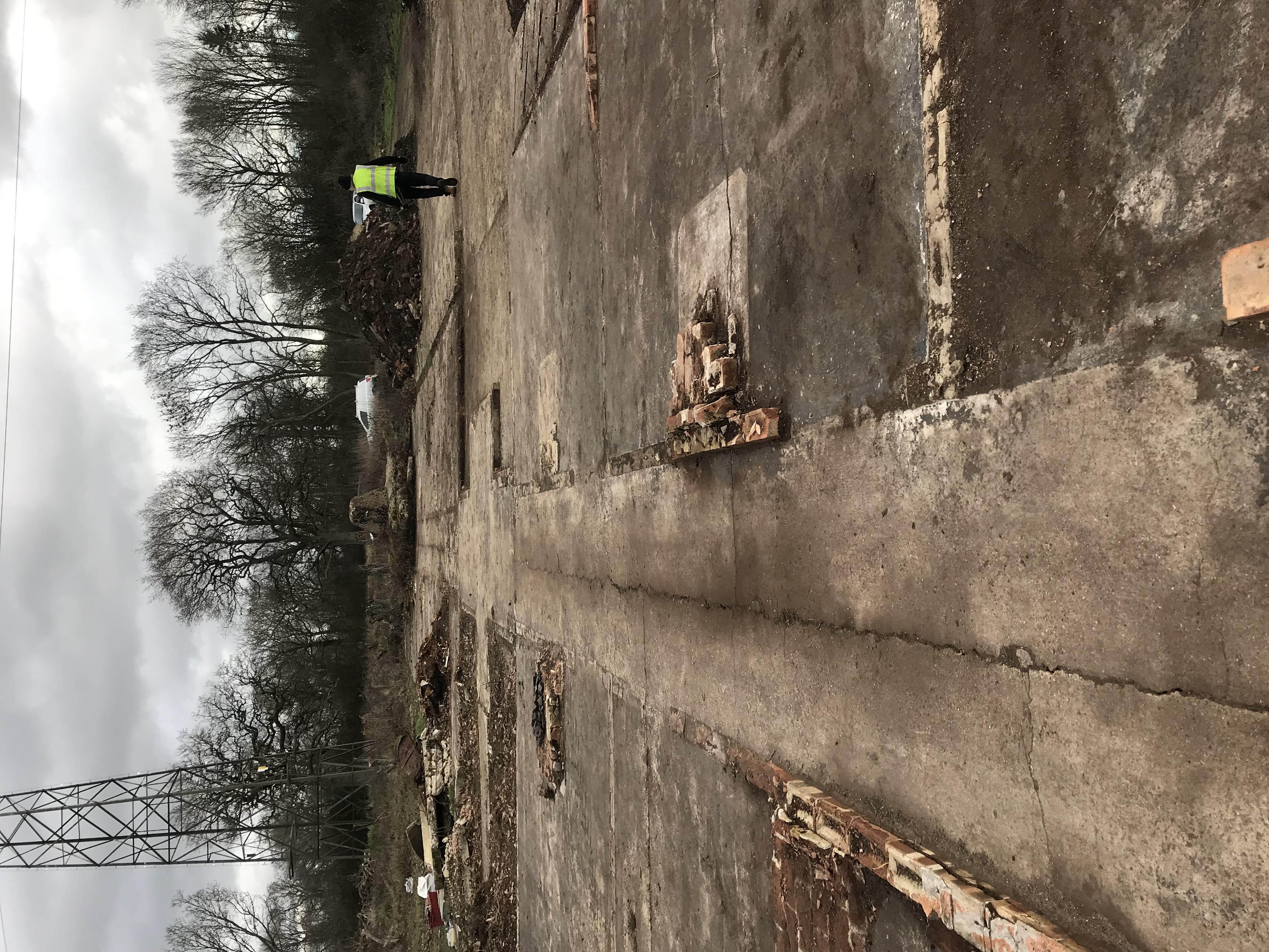 - The layout of the surviving brick walls through the office buildings.