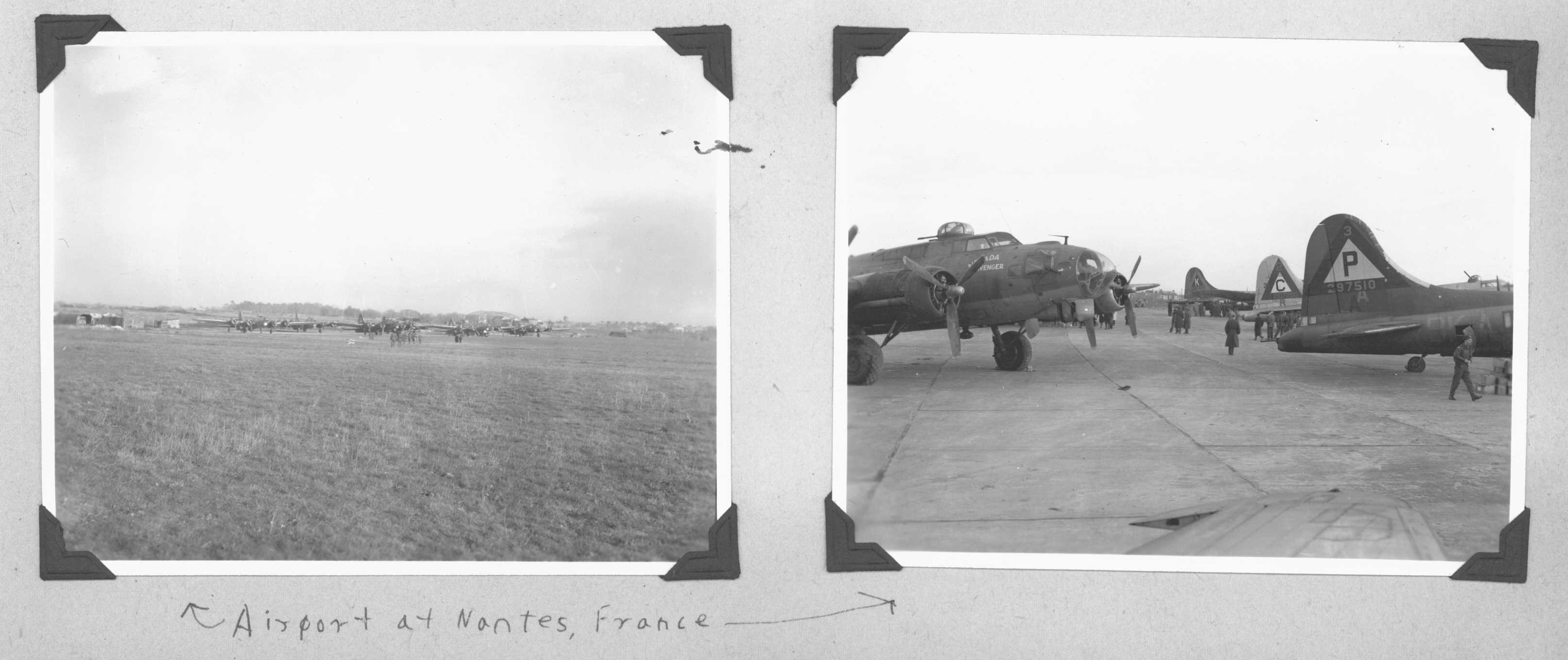 The aircraft parked at Nantes. Left - Nevada Avenger, right front to back - Satan's Playmate, Old Black Magic, unknown. Photo Robert Bletscher, courtesy of www.384thbombgroup.com