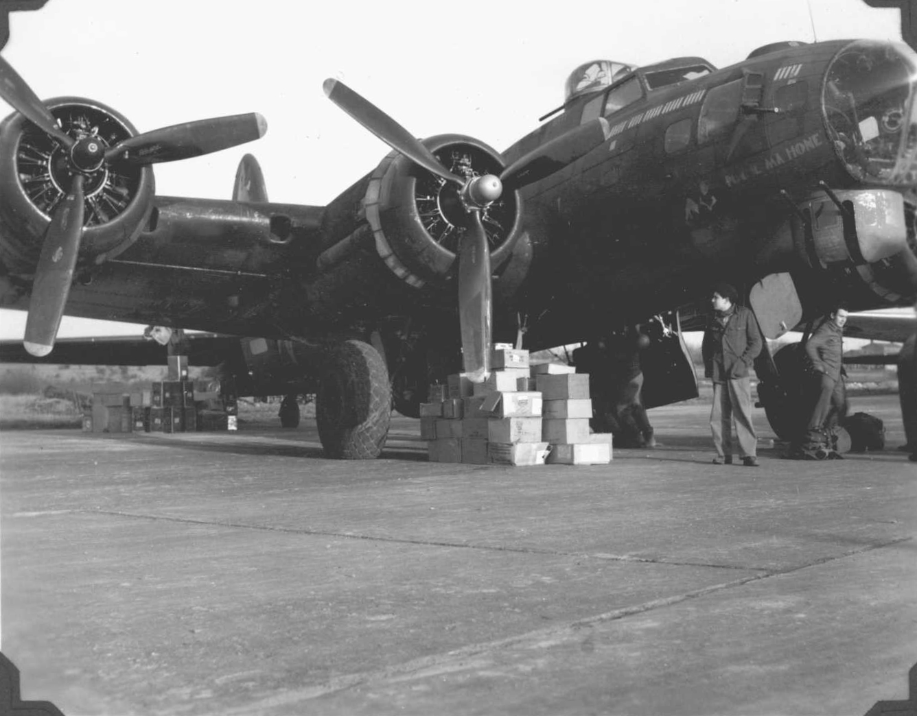 B-17G #42-97510 Satan's Playmate being loaded with the gifts that had been collected. Photo Robert Bletscher courtesy of www.384thbombgroup.com