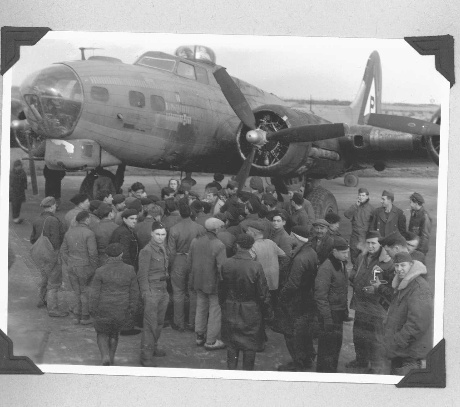 Although the broadcast initially suggested one Boeing B-17 would fly over to Nantes, eventually it would require seven B-17's (though how many were based at Grafton Underwood is not certain) - they had their bomb-bays loaded with parcels and made the journey on December 30th 1944. From the 384th Bomb Group, B-17G #42-97510 Satan’s Playmate and B-17G #42-38013 Nevada Avenger (both later to become century bombers) took part. Also participating from their fellow 41st Combat Bombardment Wing Bomb Groups were B-17G #42-31060 Pogue-Ma Hone and B-17G #42-107206 Old Black Magic of the 303rd Bomb Group at RAF Molesworth, and B-17G #42-297469 Busy Baby from the 379th Bomb Group, at RAF Kimbolton.
