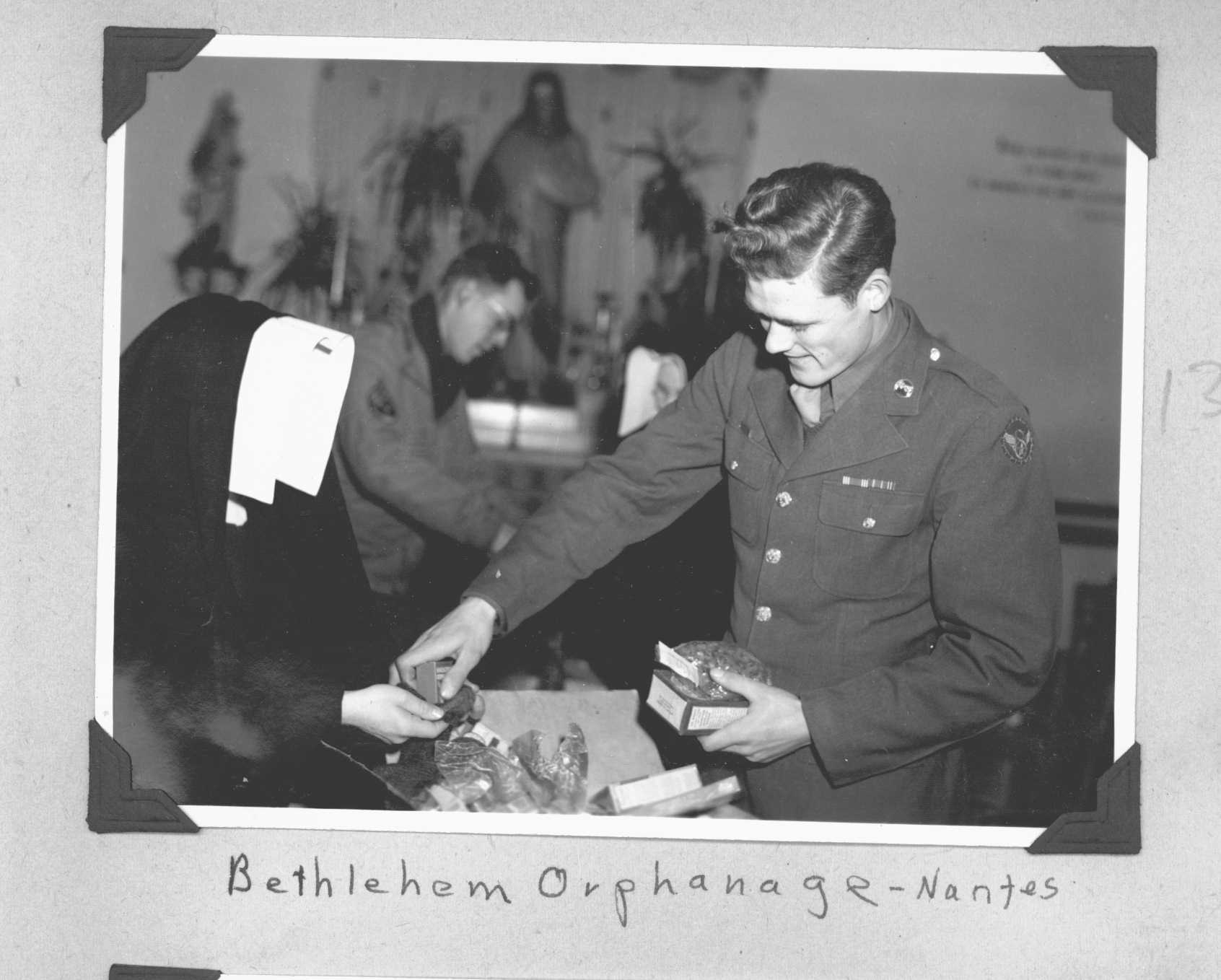Gift exchange at the Bethlehem Orphanage in Nantes, France. Photo Robert Bletscher, courtesy of www.384thbombgroup.com