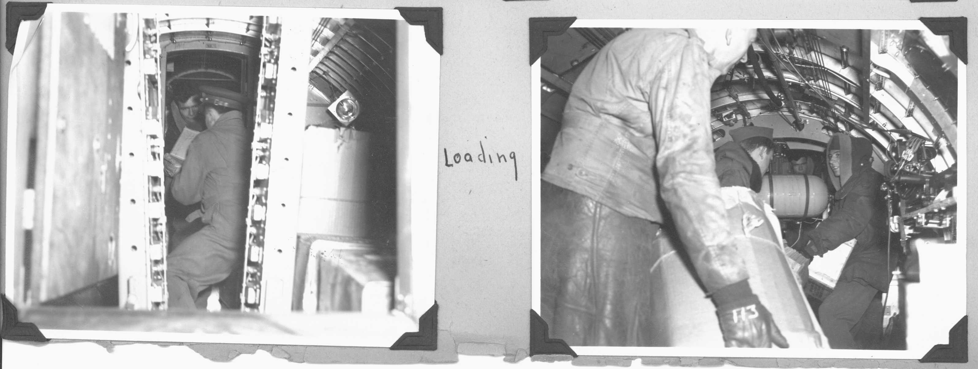Loading the B-17's with the parcels, note the bomb bay racks in the first image. Photo Robert Bletscher, courtesy of www.384thbombgroup.com