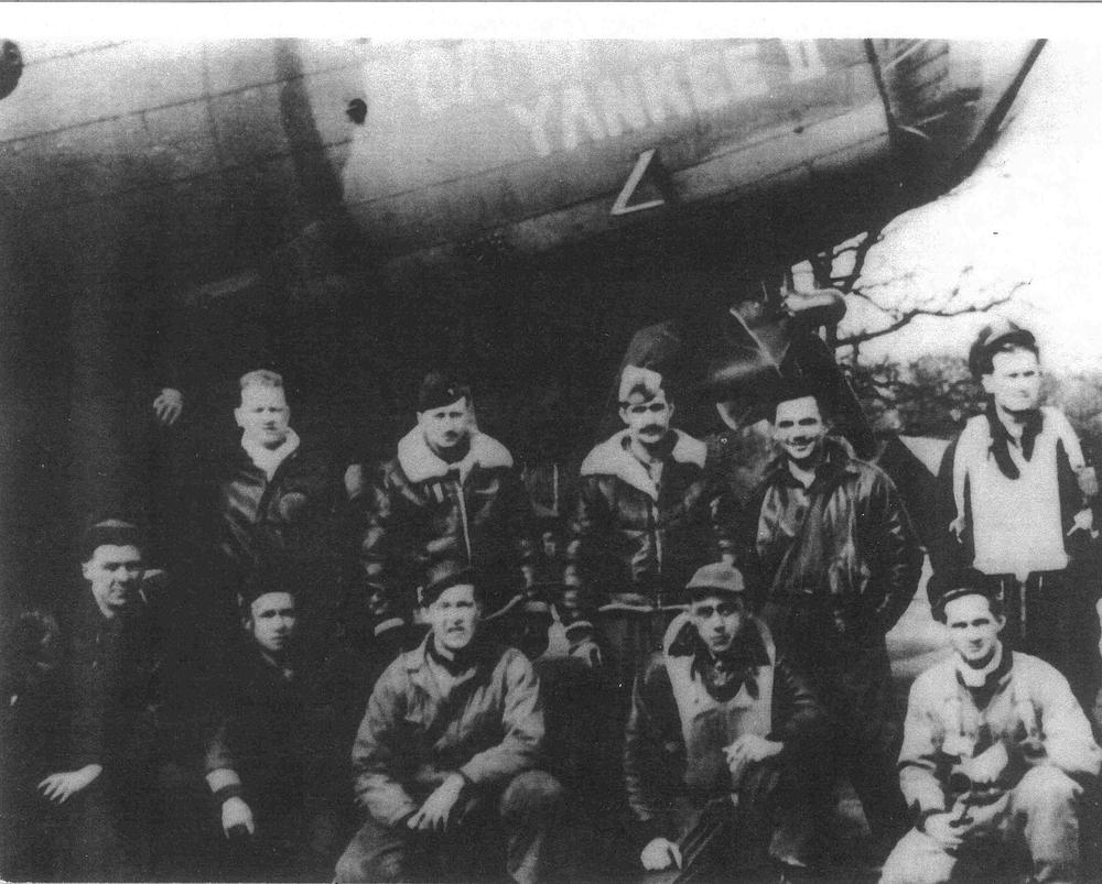 Fioretti Crew in front of B-17F 42-29809 JD*X Damn Yankee II, on the day before they were shot down. T/Sgt. Rachunas front row, 2nd right. Photo courtesy www.384thbombgroup.com