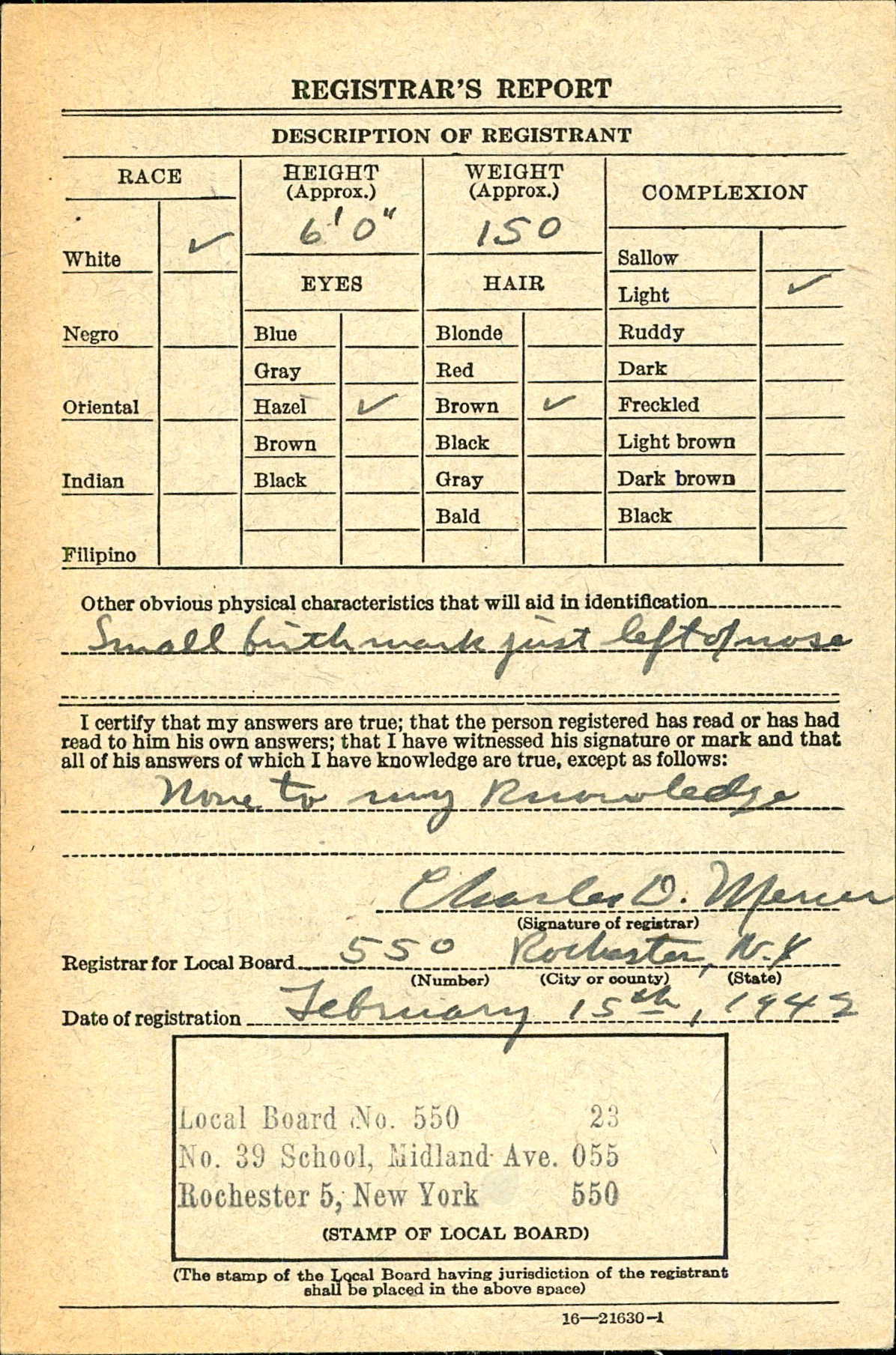 Teddy was a graduate of Benjamin Franklin High School in Rochester, New York and prior to enlisting had worked for the Bausch and Lomb Optical Company.
