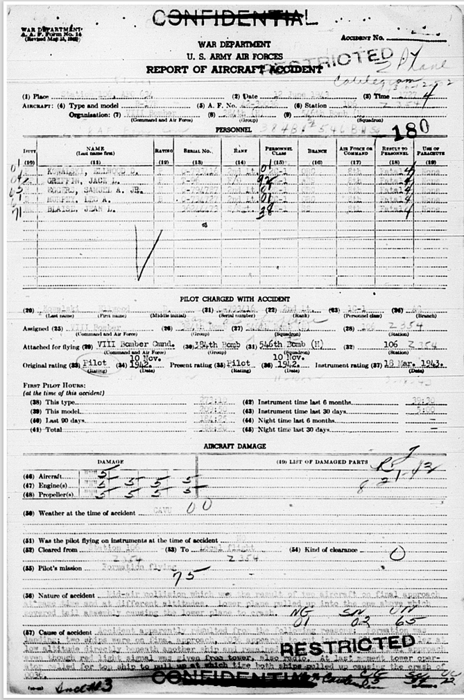 The Navigator onboard #42-30131 is stated as saying there was confusion onboard their aircraft, with the bombardier calling the pilot, 2nd Lt. Francis J. Witt, several times and instructing him to pull up to avoid the lower aircraft, assumedly having spotted the impending danger through his vantage point in the nose of the aircraft. In his statement, Pilot 2nd Lt. Witt states he 'suddenly' heard the calls to pull up, and did so immediately.