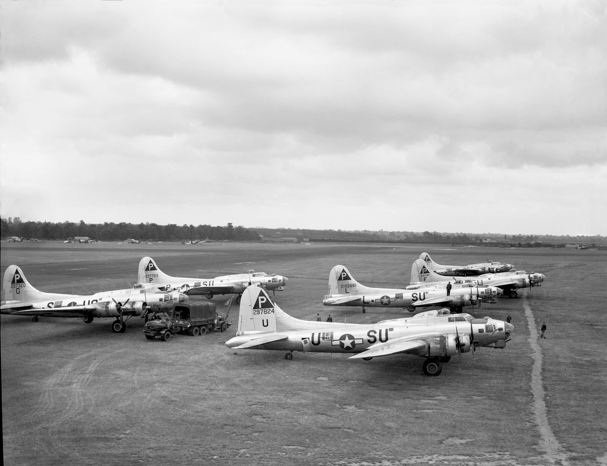 #42-102661 at Boxted, carrying code SU-L. This was after the aircraft's 19th combat mission, where bad weather had forced several aircraft to divert to this airfield. Photo Chad Barnes courtesy of www.384thbombgroup.com