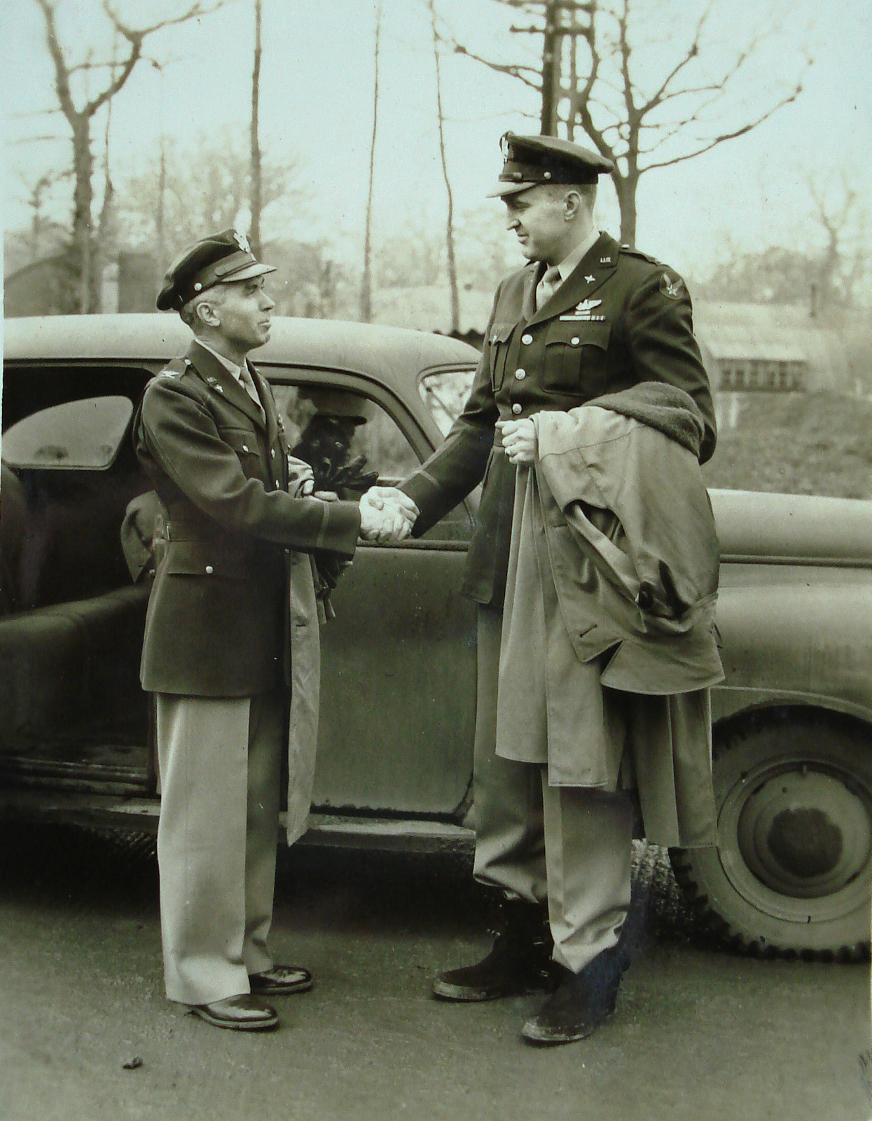 Change of 384th BG Commanding Officer - Budd J. Peaslee (left) to Julius K. Lacey (right), 6th September 1943. Photo - Tony Plowright courtesy of www.384thbombgroup.com