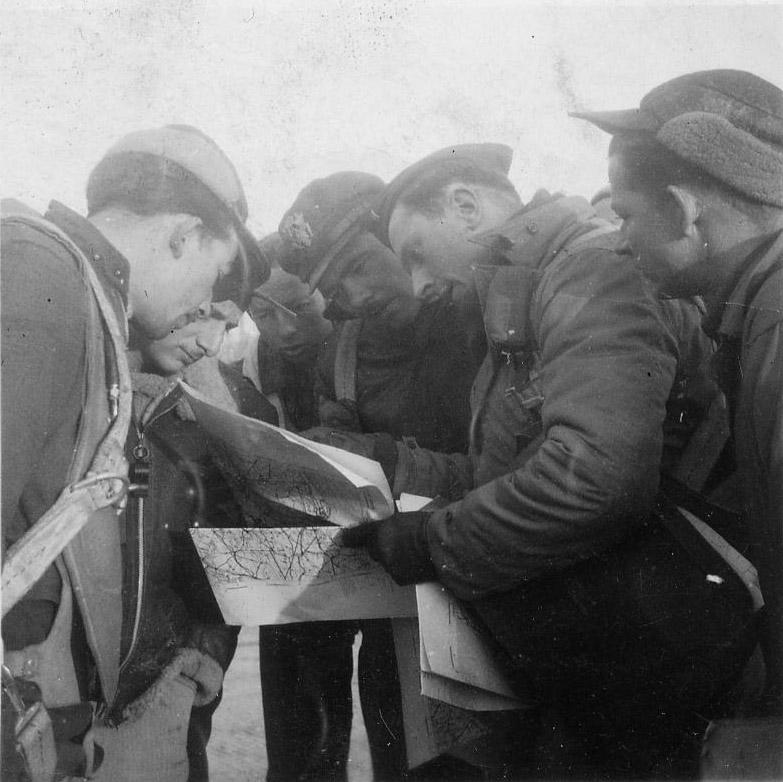 Taken 24th Dec,1943, the mission prior to his last. L-R - S/Sgt. Jack Goetz, T/Sgt. Aldo Gregori, 2nd Lt. Winthrop Jackson, 1st Lt. Randolph Jacobs, 2nd Lt. John Curtin, S/Sgt. Doy Cloud. Photo courtesy of www.384thbombgroup.com