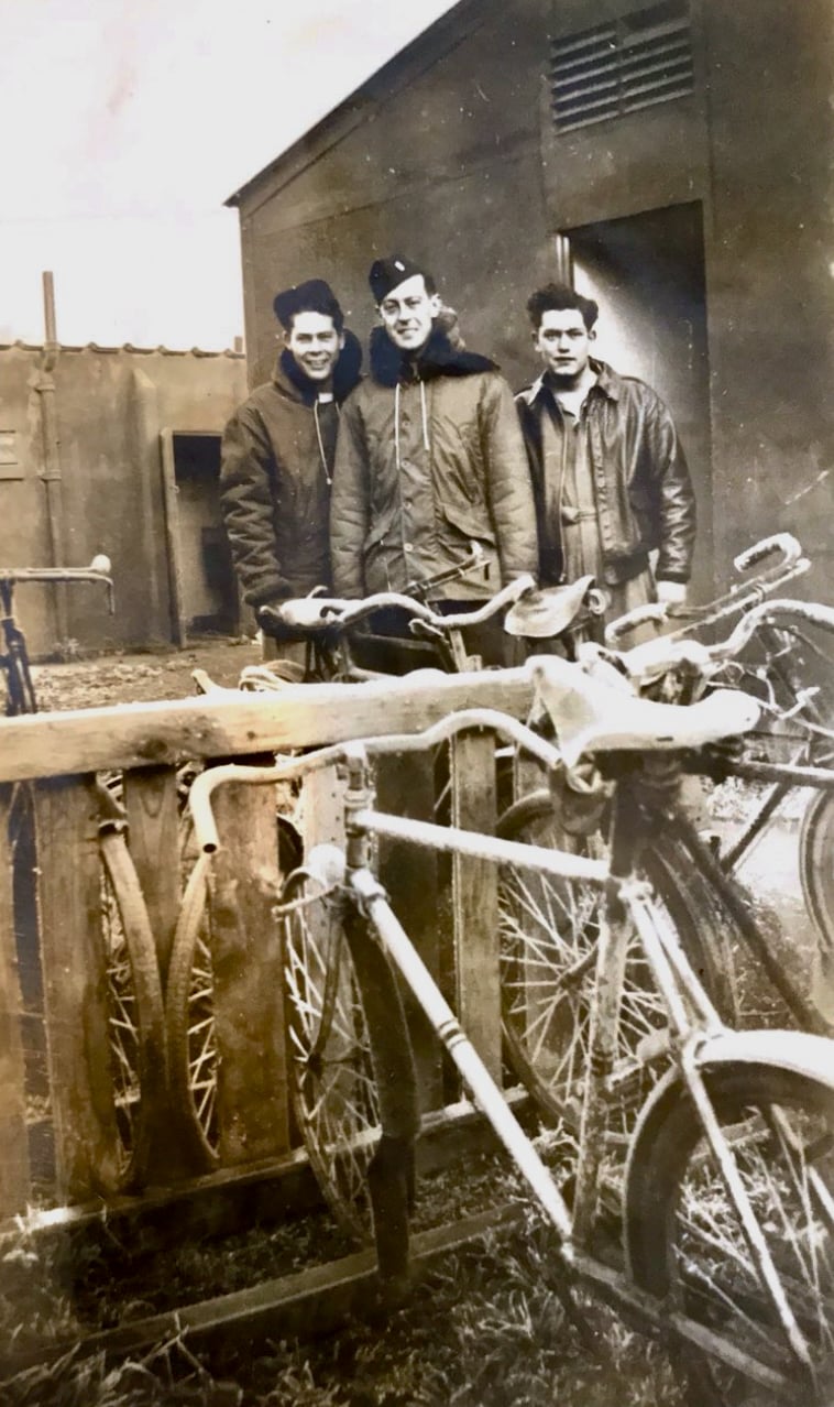 L-R 2Lt. Sam Bass, Sgt. Fonda Miller, S/Sgt. Henry J. Kolinek. Photo courtesy of Henry J. Kolinek, Marsha Kolinek Dunevin