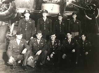 S/Sgt. Henry J. Kolinek, front row 2nd right. 2nd Lt. Raymond J. Gabel crew (Back row, 2nd right). Photo courtesy Henry J. Kolinek and Marsha Kolinek Dunevin