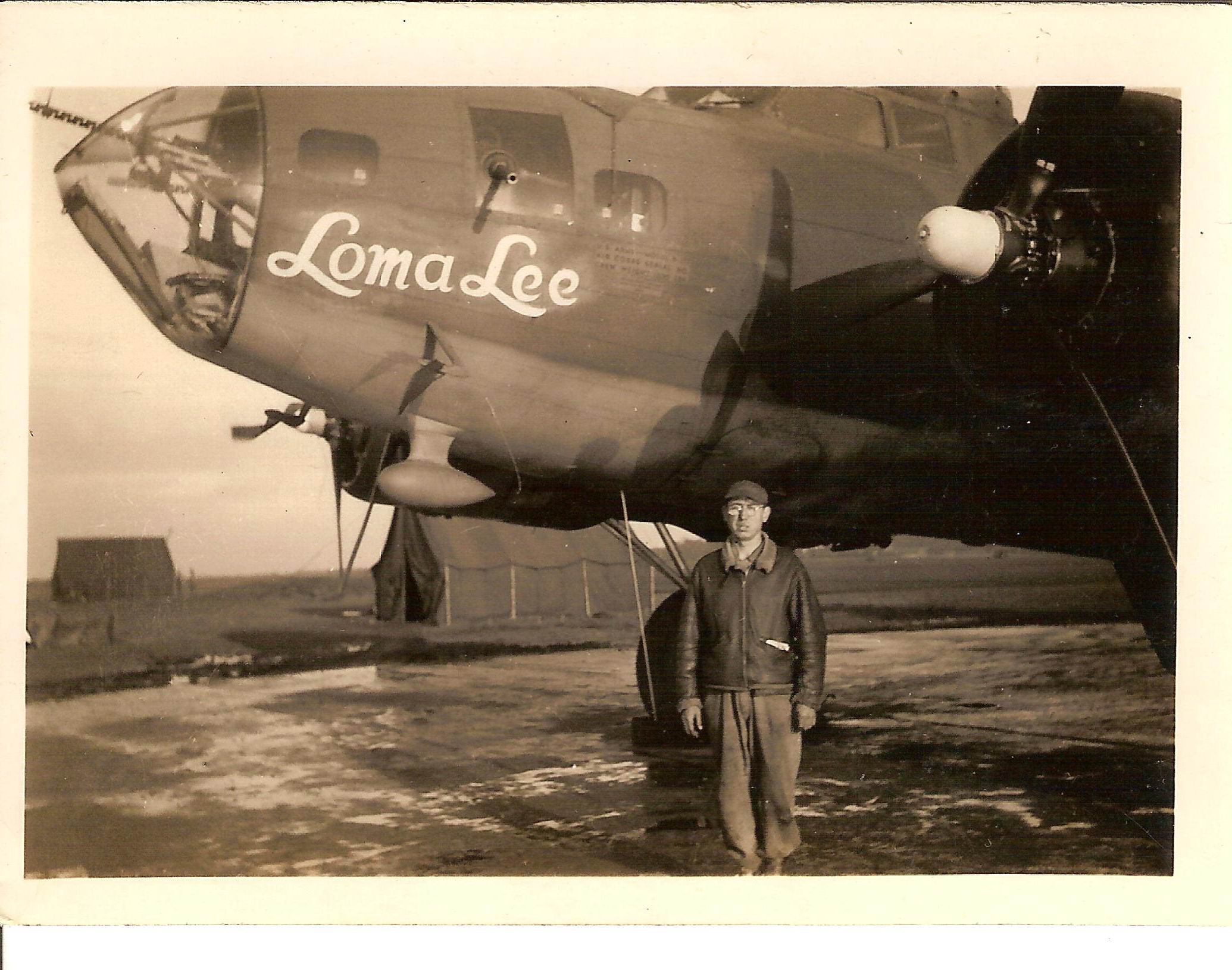 S/Sgt. Charles Renshaw with B-17F #42-3074 Loma Lee. Photo The Quentin Bland Collection, courtesy of www.384thbomggroup.com