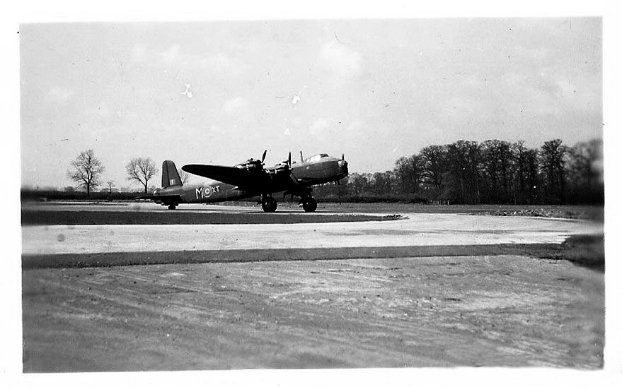 Short Stirling photographed at Grafton Underwood. The huge undercarriage legs and wheels are evident in this image. Photo Tony Plowright, courtesy of www.384thbombgroup.com