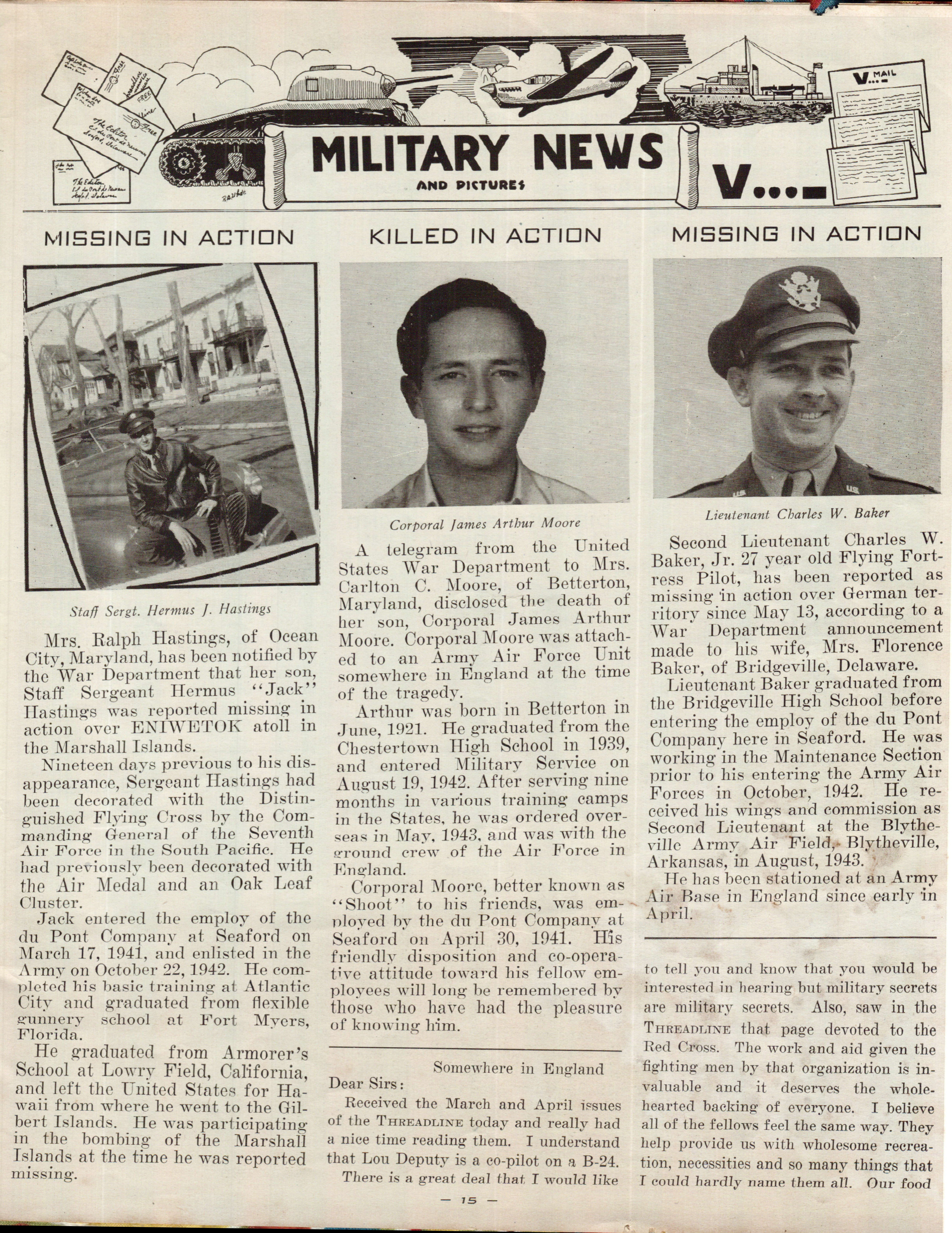 Cpl. James Arthur Moore, newspaper article announcing his death. Image Jim Bowden, courtesy of www.384thbombgroup.com