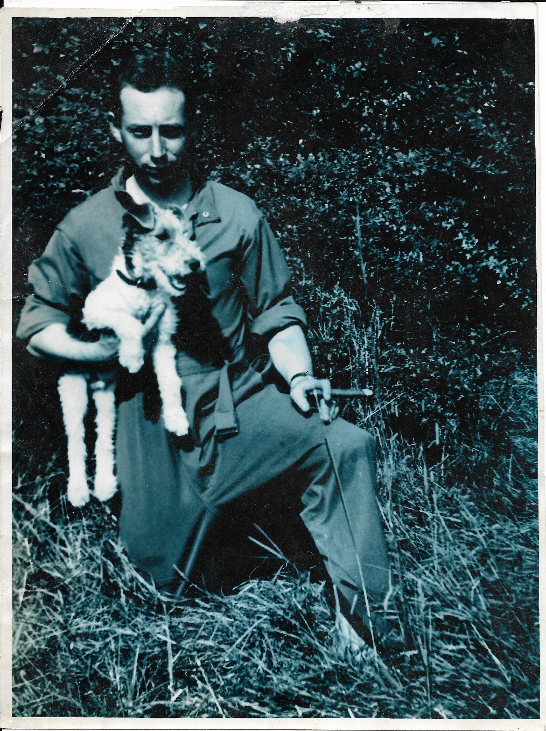2nd Lt. Mazer with Dempsey, his dog. Dempsey was to go missing after 2nd Lt. Mazer was away from the airfield one night. Photo courtesy of www.384thbombgroup.com